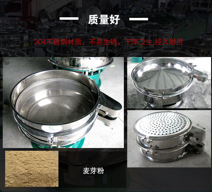 麥芽粉振動篩采用的是優(yōu)質(zhì)304不銹鋼材質(zhì),不易生銹,干凈衛(wèi)生,而且不會被物料所氧化,經(jīng)久耐用;每件產(chǎn)品經(jīng)過多道程序的檢驗(yàn)和考核的,保證質(zhì)量達(dá)標(biāo)還經(jīng)過了ISO9001的認(rèn)證